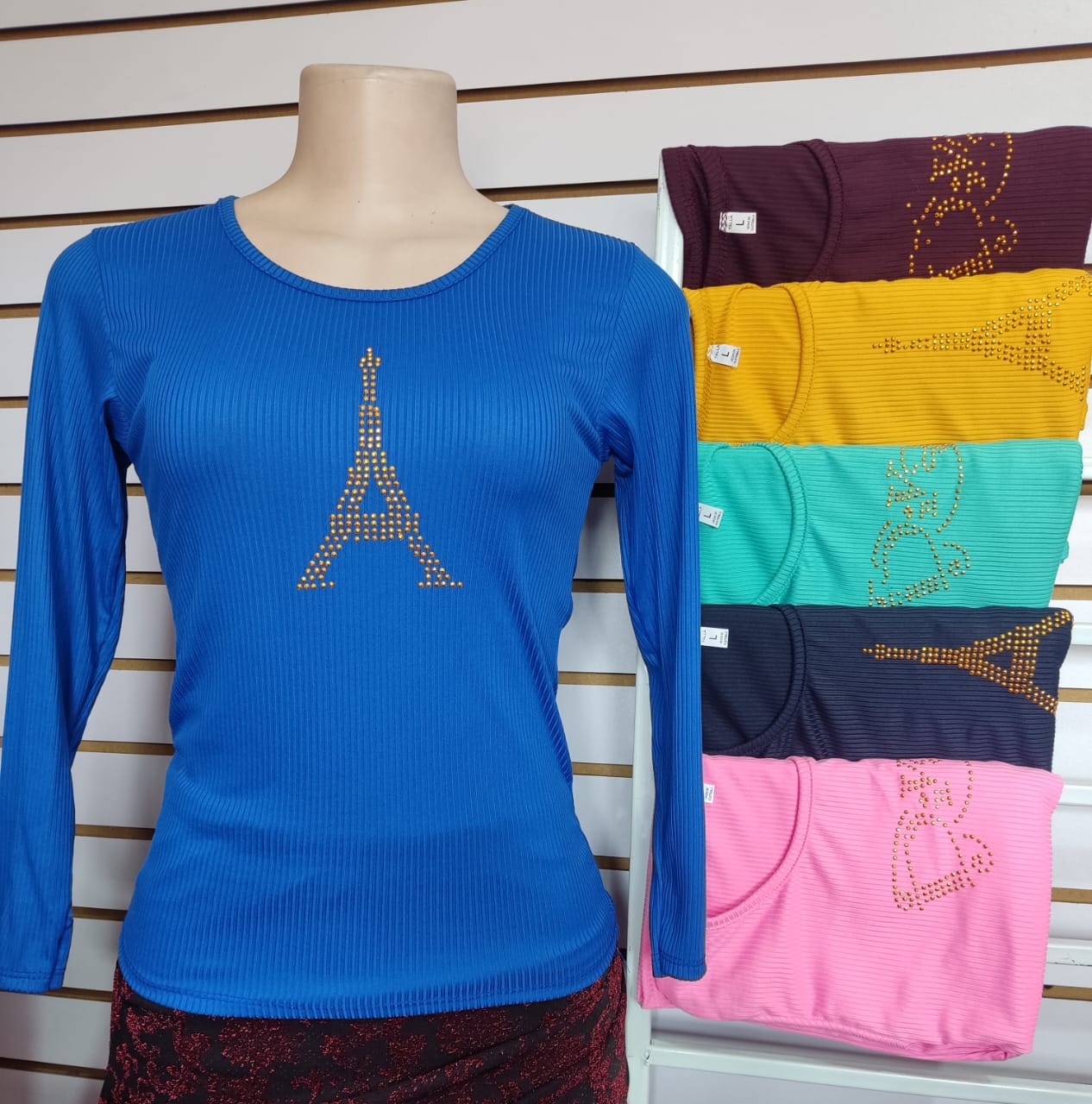 Blusa juvenil de manga larga perlas Paris, 6 colores, precio de mayorista