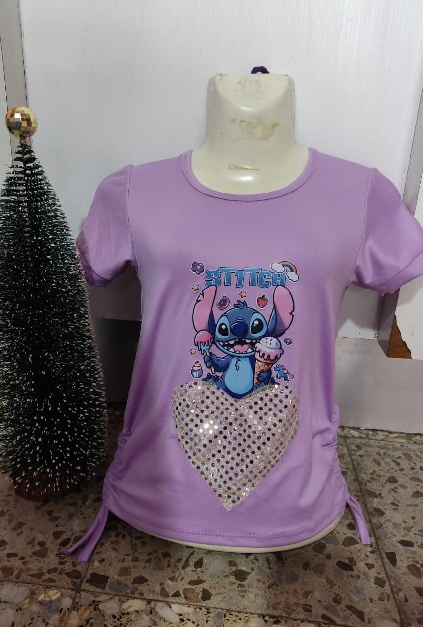 Blusa para niña de cintas con corazon brillante Stich helado Talla.S, precio de mayorista